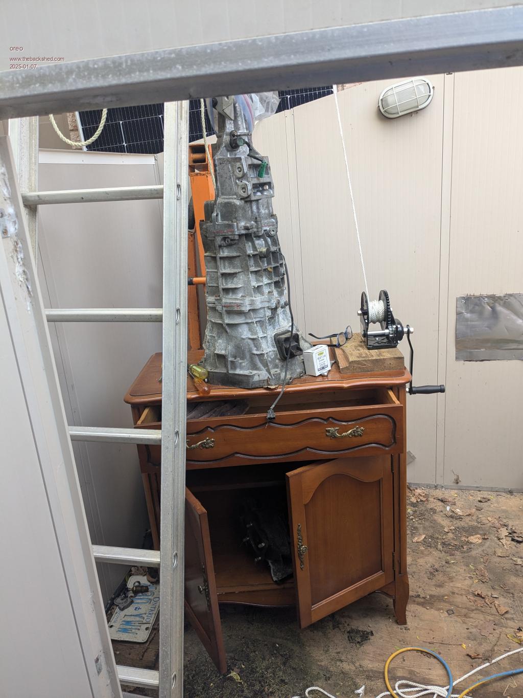 Your winch arrangement looks like something I might do. Whatever works is good  ...  and you survived.