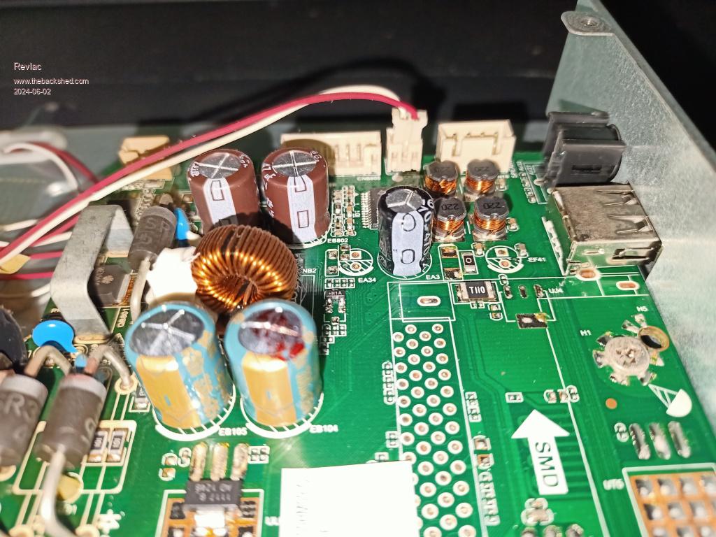 Ok the power supply is unstable, WHY? those 2 capacitors 35v 330uF look stuffed, lets fix that with a replacement....well thought I had some but not easy to find the exact ones, so found 35v 470uF and a 35v 220uF not exact but worth a try, so put them in.