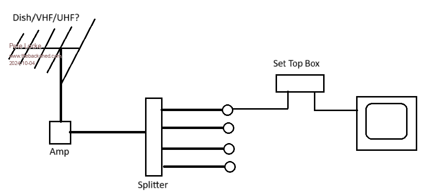 ryanm said  The amplifier / splitter setup is far enough from the manhole that I will have to take a packed lunch for the trip so I'm trying to at least get a working theory before I go up there.