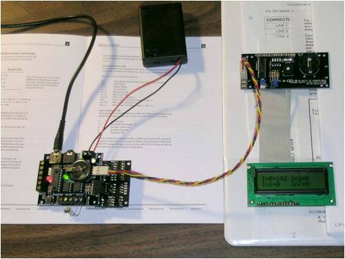 The kit can be automatically programmed to get it started. I need to add some internal math to turn the raw numbers into calibrated values and make the LCD label the numbers in a more relevant way. Once the memory is full, the program normally stops, but I'd like it to keep feeding the LCD data. A few things to tweak like that.