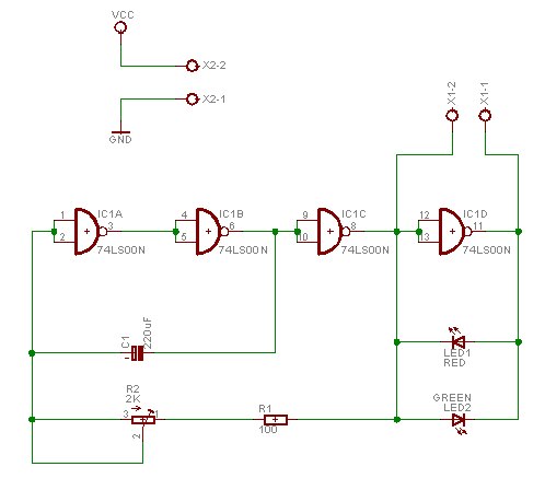 Hi, C1 is not tantalum. Why not a 555? Well, back in 1985-1986 74LS00 was very cheap. Still have a bunch of them. And it offers nice visual feedback with such a few components. [quote]Surprised it works.[/quote] It works nicely but if you want to use as a test circuit for PICAXE pulse count, then you must use optocouplers because the noise is big. Try it for fun .