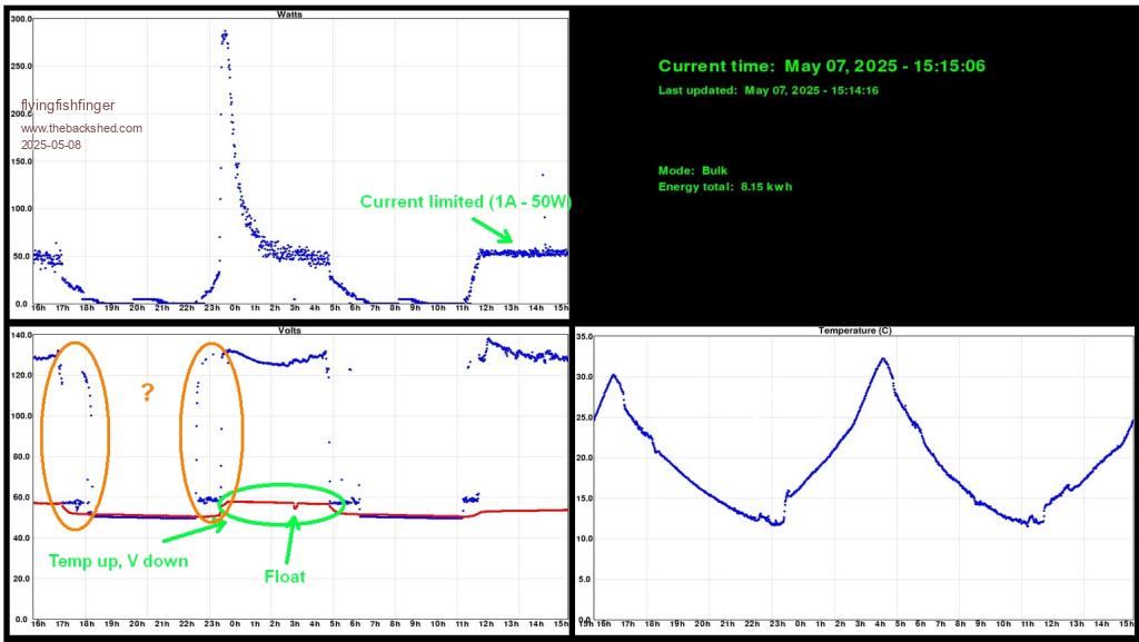 I labelled some interesting trends that map to MPPT settings in green, along with a bit I don't understand just now in orange.