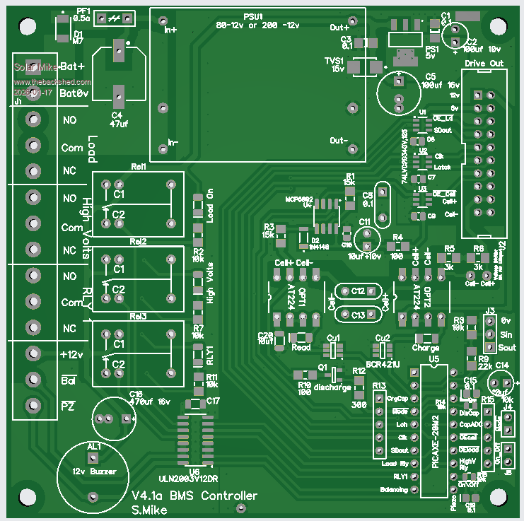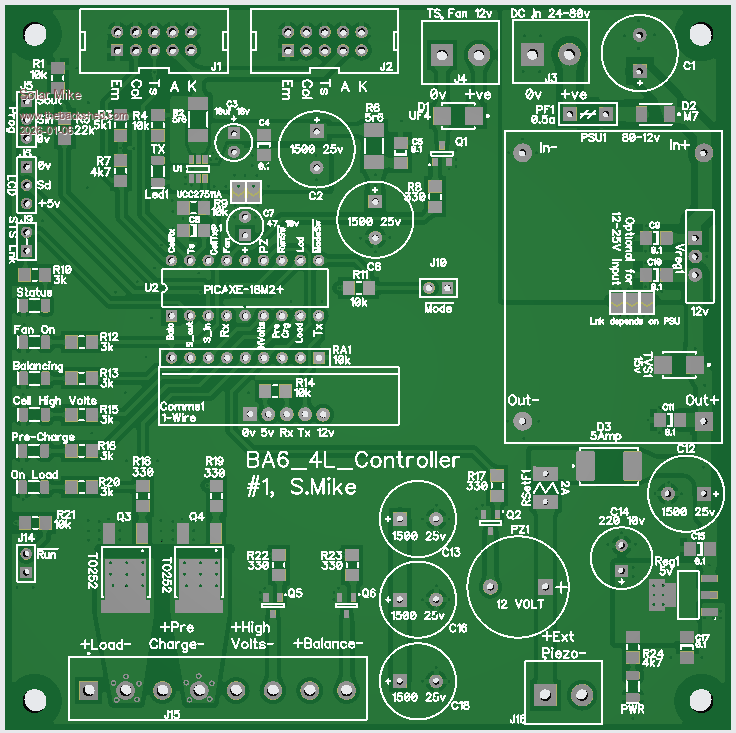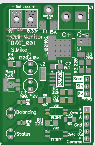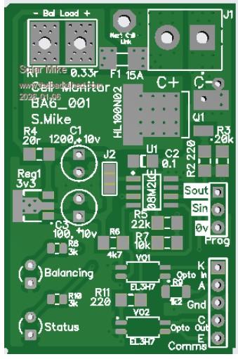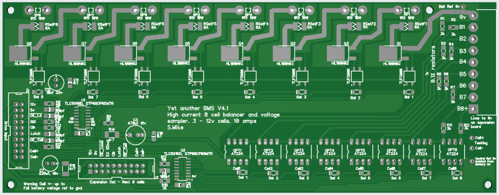 Here is the older balancer PCB, as its serial driven, extra boards can be daisy chained for more cells as required: