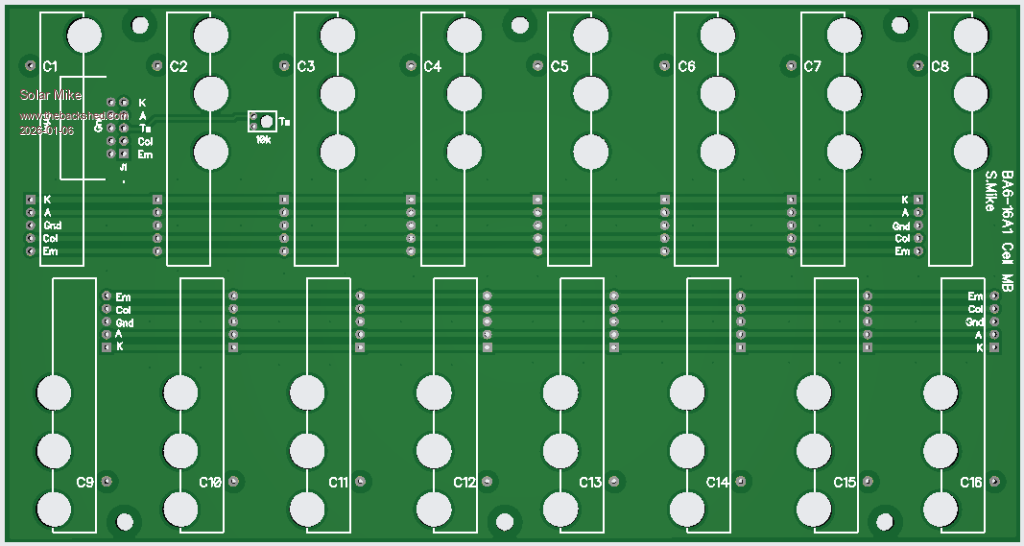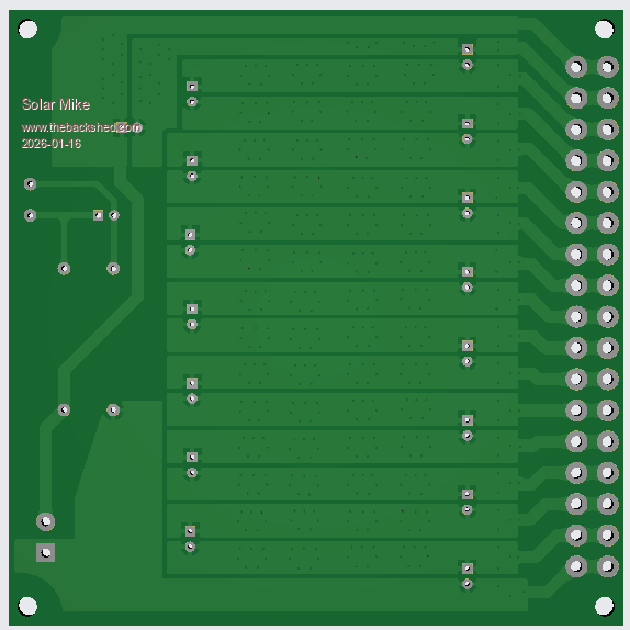 I have been using a different sort of balancer for our 3 banks of 300AH 48v Lead Carbon 6v cells, so 8 cells in series per bank; will post the pcb below.