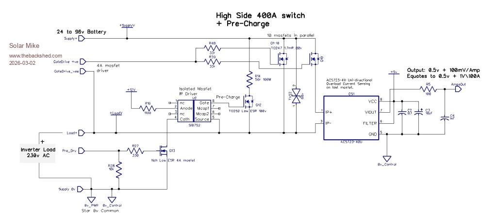 What I really need is a SSR relay, with an inbuilt current shut-down, this can be connected to the BMS Load output and act as a main Load relay to the inverter supply input, combined with a simple resistive pre-charge function. The over current setting would have a pot to set between low and high limits for various testing purposes.