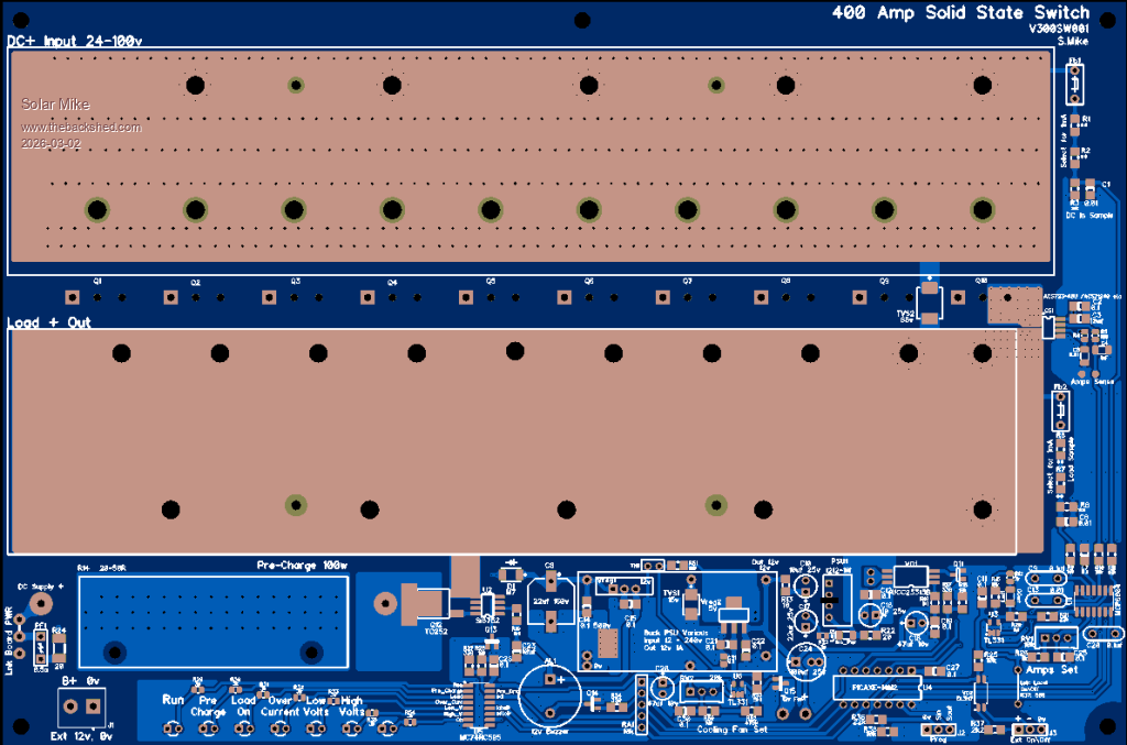 Continuing with this project, have completed a layout for the high current inverter load switch.