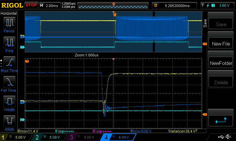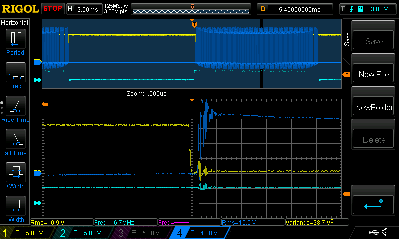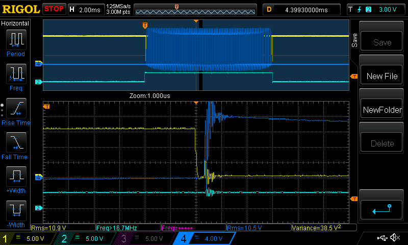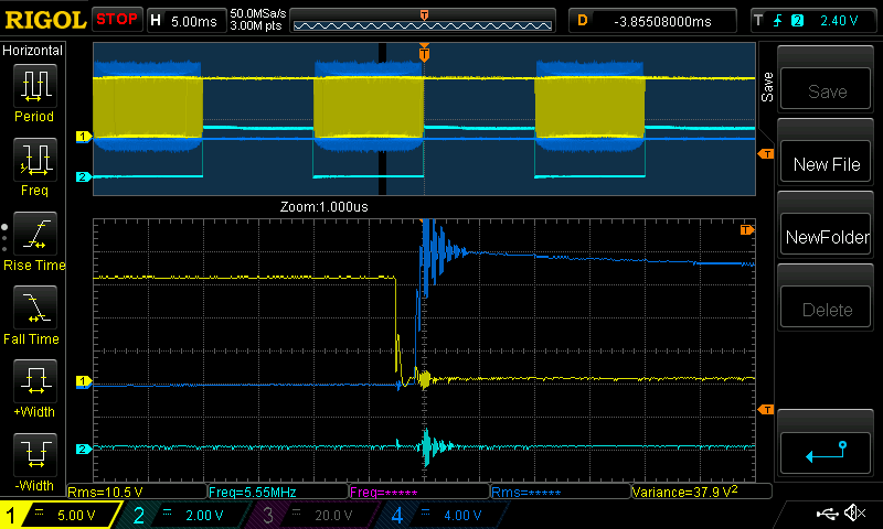high side switches on (dare blue is high side gate voltage) and this is where the trouble is located.