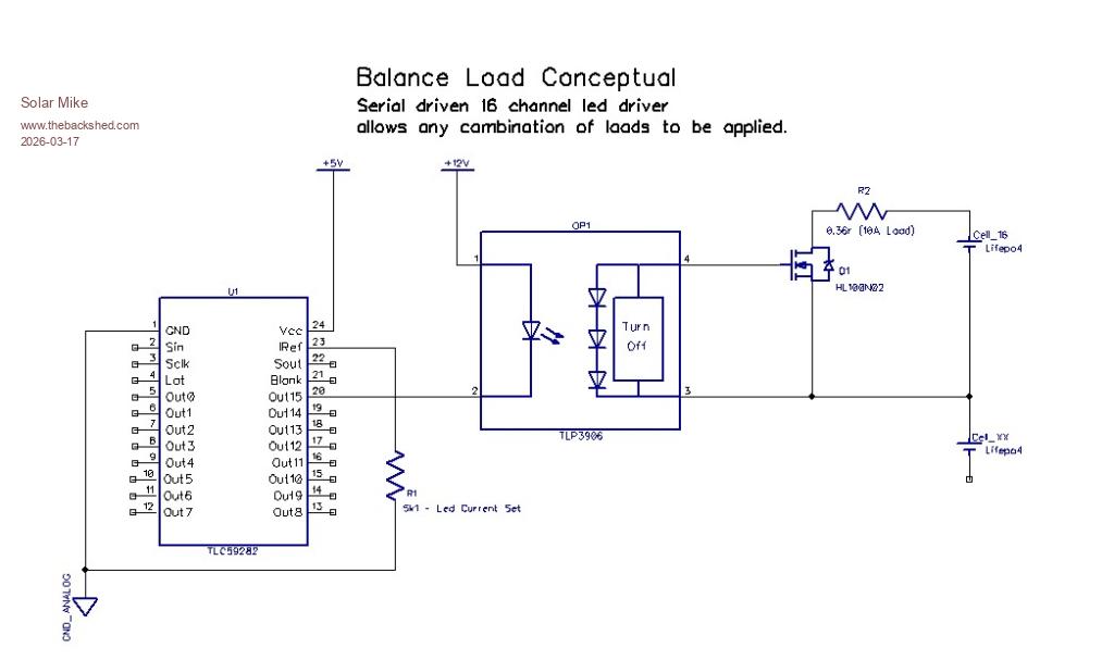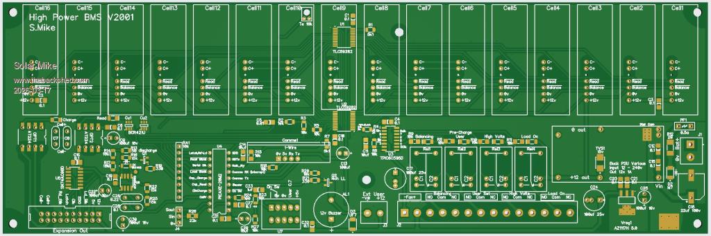 My thought now is to use the "Flying Capacitor" arrangement, with each cells monitoring components placed on a small pcb soldered to the main CPU board, similar to the "1 CPU per cell", but less parts, so easier to make. Allow 16 cells for 48v, with an expansion port for another 16 in the future.