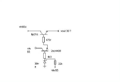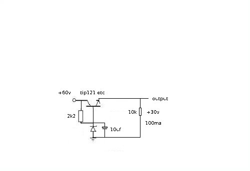 i,m trying to build something that,l regulate high dc (60-80 v) down to about 30v at maybe 60ma...an emitter follower seems to be an ideal solution but no success......transistors are painfully vague to me