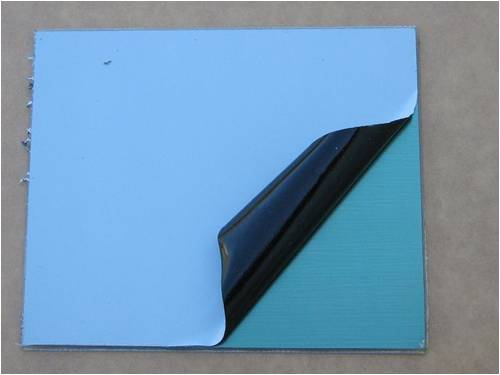 Cut the board to size ( a hacksaw works) and clean up the edges so no copper burs remain. Remove the plastic film covering the board. This will expose the green uv sensitive film on the board. Try to do this under low light levels and preferably with a incandescent light as this has no real UV light spectrum. (fluros do)