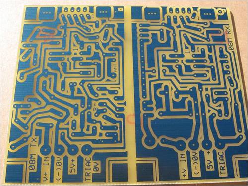 The whole process is a bit rough but it works for me and gives a workable board at the end for minimal effort and cost. The process allows me to produce a reasonable board in less than an hour from printer to assembly and if doing several boards together than this time is reduced greatly per board. You never stop learning with making pcb’s and I hope this helps others to produce fair quality boards of their own. I also hope this inspires others to post their methods of making pcb’s regardless of how simple or complicated the method is. We often use ideas from many sources to find a way that suits our needs best as I have done. What is your method? A few more tips. I think Epson has a much better inkjet, ink than canon and others for printing the artwork as it is an alcohol base ink and not water based. It prints sharper edges and is a blacker ink. I use a laser printer now but ink jet was all I had for years. There is no need to wash the board to remove any oil film, as there shouldn’t be any if used correctly. Besides caustic is a great degreaser anyhow. Design software This is a personal choice to most with what they have or know how to use. My preferred choice is ExpressPCB And can be downloaded free from here. ExpressPCB I find its a basic, easy to use software package that can be learnt quickly. Ammonium per-sulphate I use ferric chloride but many etchants will work. If you use ammonium per-sulphate it is a nice clear liquid to work with, but it don’t last as long as ferric chloride. I found mixing ammonium per-sulphate in chlorinated tap water killed it stone dead as an etchant, so use rain water or buy some distilled water. Home made etchant If you don’t have any ferric chloride or any other etchant than a etchant can be made from Hydrogen peroxide ( 3% by volume from the chemist shop or supermarket) and hydrochloric acid (HCL). From bunnings or a hardware store, even a swimming pool place. ( used as a ph adjuster ) Mixed at a ratio of 2 parts hydrogen peroxide to one part neat hydrochloric acid. The solution will turn a redish colour by memory when mixed. ( or was it green??) The life of the solution will only be a few days as it will oxidize quickly and become slow and take all day to etch. Fresh it will work fast and gives a good result. (10 –15 mins ) Copper recovery If you want to recover the copper from a well used lot of ferric chloride before It is discarded, than place a strip of black or uncoated steel sheet metal in the ferric chloride over night. The next day the copper will be crystal like on the bottom and the dark brown ferric chloride will be almost clear hydrochloric acid again. It will not be any good as a etchant after this. Pour the acid off and recover the copper . It is hard to believe, that this dark thick gunk can change so much with the introduction of a bit of steel. Test strip. Keep all the small little offcuts of the pcb sheet to be used as exposure test strips. A test strip is done by exposing an artwork image onto the pcb in stages of time. An example is. Place the artwork on the strip of pcb and expose it for a minute, than place a piece of cardboard over a small portion of the strip one end (10-20mm), expose it again for another minute, then move the cardboard along a little more and expose again for another minute and so on till you run out of pcb strip. Then develop the strip as normal and you will see at what time period of exposure gave the best results. If the test shows over or under exposure through out, than repeat the test and adjust the time period to suit. It is a test well worth doing and is much cheaper than stuffing up a complete board. Once the exposure time is established than it should remain the same, if the same conditions as always used. ( hence why I use a uv scanner method) It dose pay to do a simular test when mixing a fresh batch of caustic solution as I have stripped a board clean in developing with the solution being to strong ( I think I said whoops , bugger and then *%$#@!!) Short cuts never pay!! A good investment is a head set magnifier and once you have one, you will ask yourself how did you made do without it.