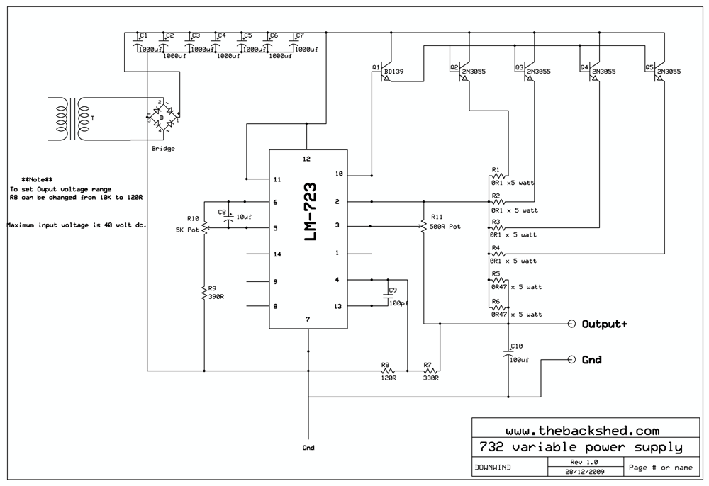 This circuit is for a variable bench power supply, up to 10 amp and a Maximum 40 volt DC input.