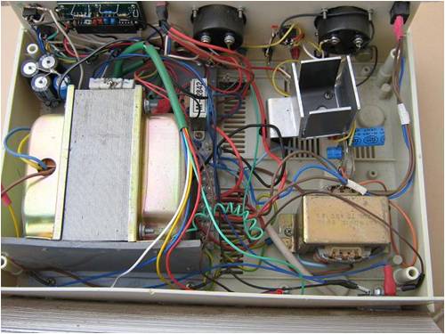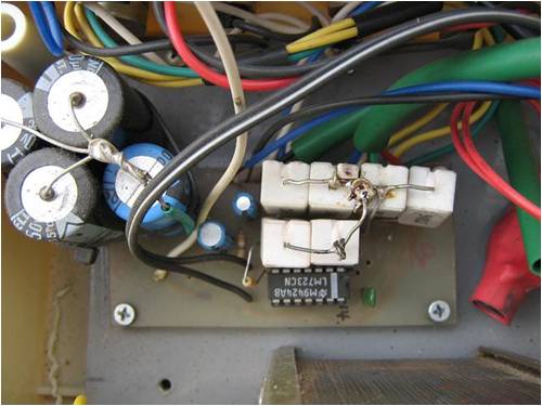 The main circuit with the LM-723 was crammed onto a small pcb with the 5 watt resistors and capacitor filtering mounted vertically.