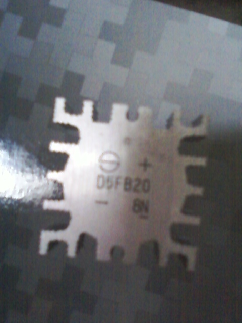This is a pic of the bridge rectifier out of it. It has the heatsink built into it. The 50v 25a ones I have don't. I wonder how many amp this one can handle.
