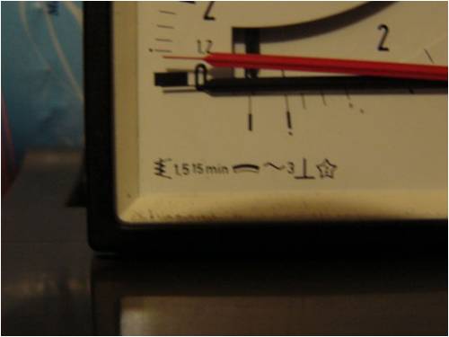 The markings 15min means the needle on the right is the average amps over 15min.