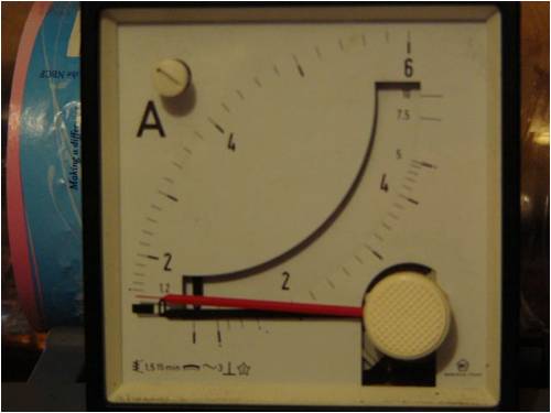 The red needle is the maximum amps ever recorded since reset and the needle in the curved windows is the current amp reading.