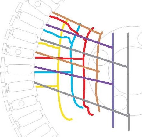 Well yes, you could do it that way if you connected the yellow bus with the pink bus, the red with the voilot, and the blue with the grey. Your arrangment could also be changed to star by connecting pink voilot and grey buss together. More versitile yet more wires.