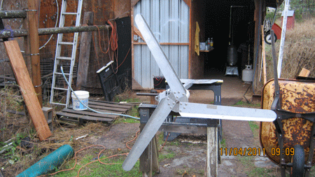 Hey Folks, I would imagine this question has been asked before, I have looked all over the net and can not find an answer. I have stopped thinking about any of the crap on ebay and plan to build a alt. from scratch. I will use either 18 or 20 gauge wire and I think around a 100 turns. And I will make 12 coils, so can anyone tell me how much wire to buy. Will 1/2 pd do or should I get a pound? Also the turbine is 5 foot, would I be safe to build a eight inch setup or could I go to ten? Here is a shot of my blade design. I welcome any remarks.