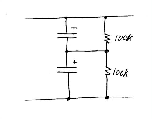 Len, I'm not sure what you are getting at with your resistor chain. I don't like that idea as my capacitor bank connects directly (in parallel) to my 24V battery bank.