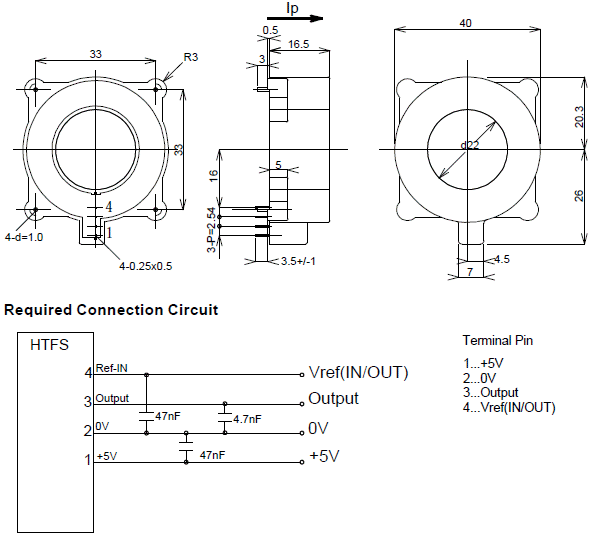 Recently I've been looking for a current sensor that I can use with a microcontroller, and measure a few hundred amps, accurately. I've used the Alegro current sensors before, but these need to be wired into circuit, and my situation means I may need to draw spikes at over 400 amps for a short time, which I feel is a bit much to ask of the Alegro connection leads, even though they are rated for that sort of current. What I wanted was a inductive current transducer, these have a hole that you feed the current carying wire through. No terminals or connection to worry about. Most of these transducers need a +- votage supply, typically +15 to -15. They can also have a couple of trimpots to adjust offset and gain. They are also expensive. But I found one that I think might be the ducks nuts. The HTFS 200-P, from LEM. Its about $34.oo AU, and measures up to 300 amps. They also make a 600amp and 1200amp version. The hole is 22mm in diameter, meaning you can feed a pretty big battery cable through. Supply is +5V, no negative supply needed, ideal for microcontrollers. And best of all, it has a Vref pin.