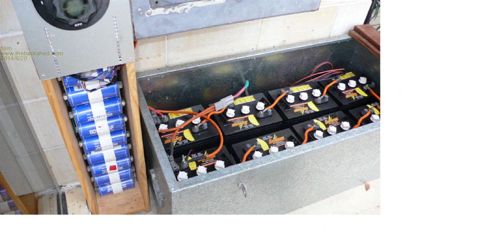 Here is a pic of the Ultra-Caps / Batteries , there are 2 x PVE 1200 Grid Inverters feeding off the system , 2.5kw of Solar and at present I have 2 x 2kW Chinese wind turbines up for testing , one with the GOE Blades opposed to the Factory supplied blades.