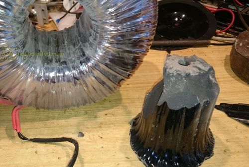 Next I needed to remove the core, and this was different to the 1.5kw model transformer. My core was filled with some sort of epoxy, so I had to gently chip away at it for an hour until I could carefully tap out the core.