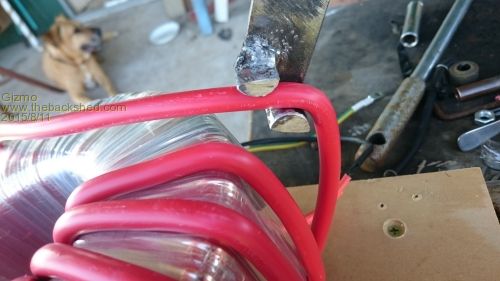 Started on the transformer. Winding the 25mm wire is tough work, but I made a bending tool and a timber wedge tool to help bend the wire for a neater finish and shorter wire length.