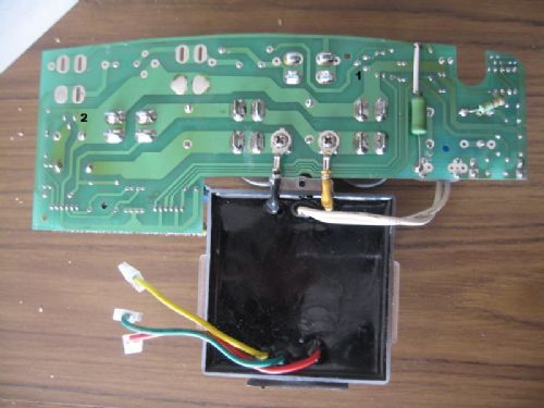 you can see the transformer primaries that I mentioned earlier, a couple tracks are cut with components added, if you look closely I have numbered the SCR's so you can see the track they are controlling, No2 is next to the coil.