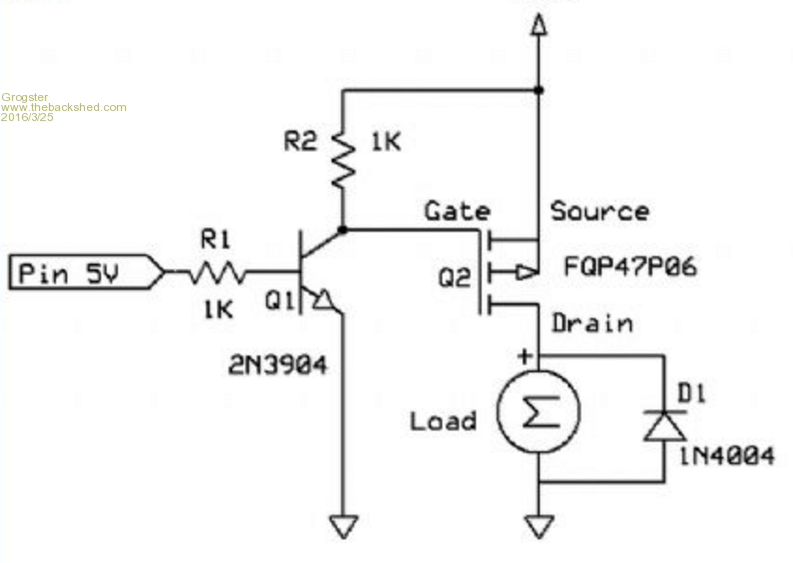 The advantage of this kind of arrangement is that it will work right down to only a couple of volts, and the ON resistance is tiny compared to a standard bi-polar transistor. This means that the switched device will see 99.9% of the full supply voltage - there is no 0.6v loss with the MOSFET method. Smoke makes things work. When the smoke gets out, it stops! |