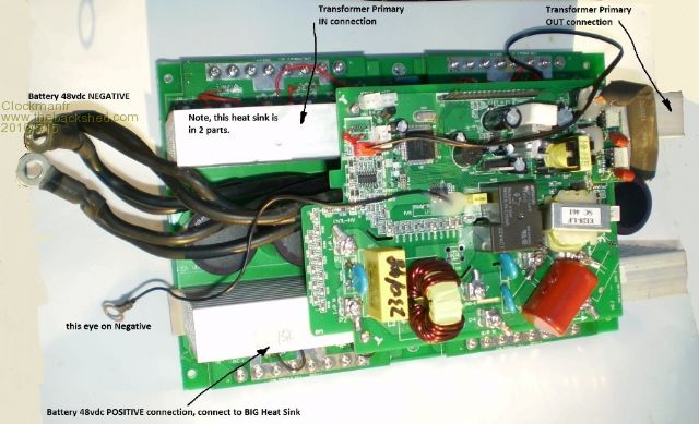 Things sure are getting crowded in there! Not 100% sure on battery connections where pos and neg battery attach, but Im gravitating towards the 2 black leads are NEG and larger heat sink is POS. Primary connections to the toroid via circuit breaker and choke are the 2 smaller heat sinks. Does that sound right?