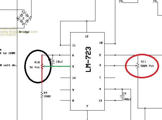 they show a 5k pot for voltage and 500ohm for current limiter.