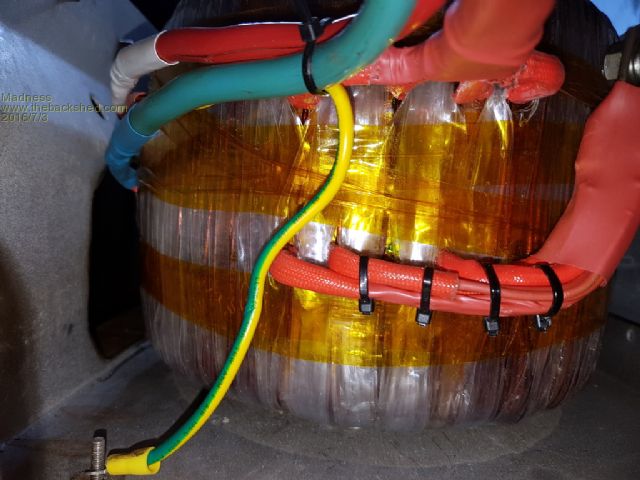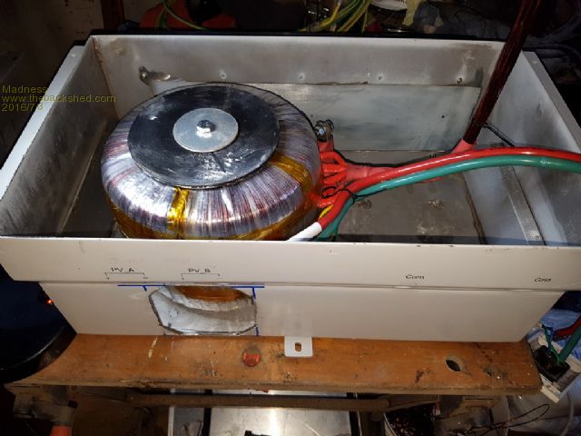 Firstly I have wound the secondary with 4 sets of 1.6 MM windings giving 8 mm square rather than the 3 in Oz's build. I have reused the 2 MM wire that came of the 2 original Torroids for the primary. There is 21 sets of the 2 mill wire giving 66 mm square. With 1/3 more copper than Oz's build in the Torroid it should be able to operate at up to 8 KW continuously.