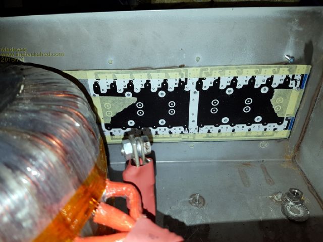 By winding the Torriod this way I will be able to fit everything into 1 original Aero Sharp case and reuse the original heat sink. My reconfigured Mosfet board which is 100 X 250 mm and has the Mosfets soldered to the bottom side of the board so they will be clamped to the heat sink by the PCB.