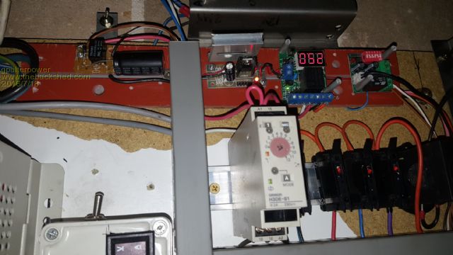 Timer near centre and the volt relay is above and to the right. I programmed it to switch on a 27.6v and off at 24.4v . Been working perfectly for 6 months now.