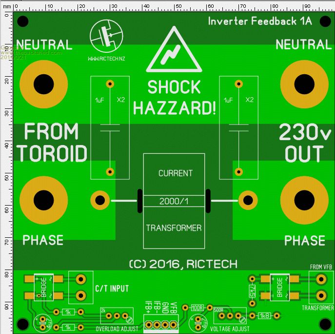 The 2nd toroid is just a spare so I can build another one later - or perhaps strip them both and stack-and-rewind a big 6kW toroid if I ever decided to do that in the future. My controller PCB's are almost finished. The system is built around four different PCB's, keeping them all to the 100x100 size so that this keeps the price for making the PCB's at a minium, as most PCB houses do the 100x100 size very cheaply. CONTROLLER: