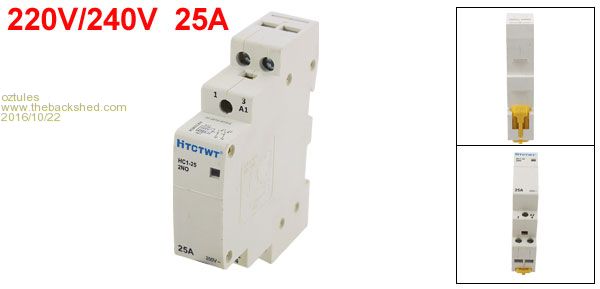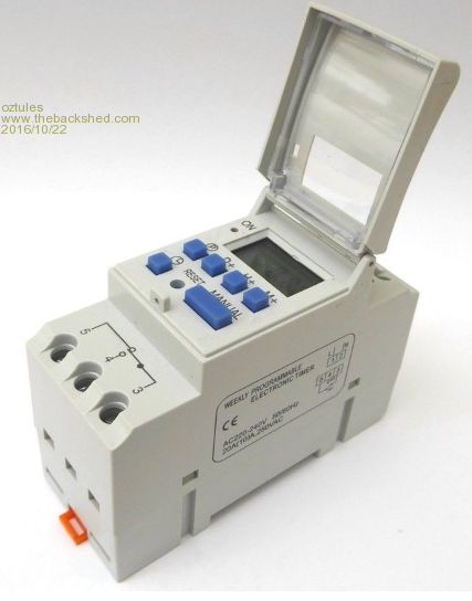 To stop the tank from overfilling with the quarry water during the filling time as given by the timer in the garage I have a solenoid at the tank and unfortunately these solenoids run at 16VAC. There may be 240-16VAC DIN-rail mounted transformers available, I have not looked so far.