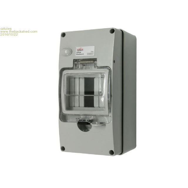 This sort of box has water proof ratings, and it has the din rail so all the stuff will all just clip in. There is room under the rail for wiring as well between items, and gland exits too.