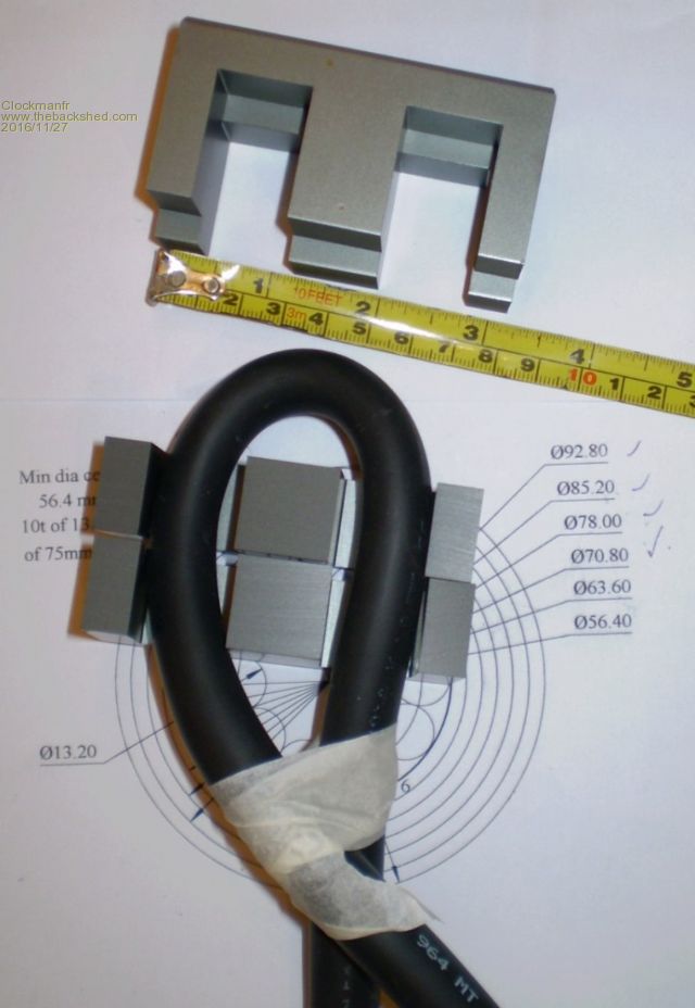The 38kg core is heavy and awkward to lift and turn without damaging the enamelling on the windings. The first photo shows an amended winding table with sufficient space to safely get my fingers under the core and cleanly lift. There are 6 rubber mats cut out, each at 1.1mm thick taped to the table. This works well as the rubber gives and spreads the weight without collapsing or being to stiff.