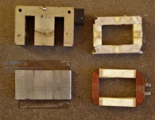 Here are the laminate blocks and main windings, there are also two small magnetic shunts which may be useful I guess.