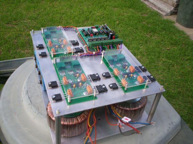 The final version which is almost finished will have four inverters (81 steps) and 2.8Kw rating. I could have fitted even larger transformers for 4Kw, all are off the shelf items, but simply do not need 4Kw.