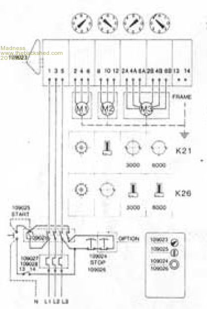 Hi Bryan, Just got the machine home yesterday that I plan to use the VFD on, it has 3 4 hp motors. There is a selector switch for each function and one of the motors has 2 speed selections. What I am hoping is that I can use one VFD to run each motor via the selector switch. The 2 speed motor runs a spindle at either 3000 or 6000 RPM via a belt drive. I have purchased the VFD in the link on my original post but it has not arrived yet. The VFD is rated for up to 5HP and the seller assures me it will do that continuously, not that it is possible to feed wood into it nonstop. Nor would it be working at full load most of the time, the machine was built in 1985 and is designed for commercial use so I suspect the motors would be overrated anyway. So my plan is to see if the VFD can run each motor via the selector with the same setting for each one, obviously, it needs to be shut down before changing the selector. Here is a wiring diagram I found. ![]() There are only 10 types of people in the world: those who understand binary, and those who don't. |