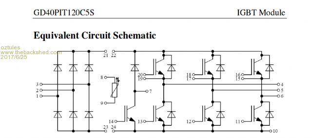 No, the ones I have worked on are not like that. I spent $700 on a bigger unit, and proceeded to blow it up in the first 5 mins. It used a big intergrated H bridge ( 1200v 40 amps ) and incorporated the bridge as well in the same package.... learnt a lot from that I could only make 1.414X the input AC rms voltage... it's package was this thing ![]() So it is only the 340vdc not + and - rail.... thus only 240v 3 phase was possible. My 240v 3 phase is 240v phase to phase. There is no neutral available unless you use a transformer..... sorry for any mix up, but I thought thats how we would use the terminology. ........oztules Village idiot...or... just another hack out of his depth |