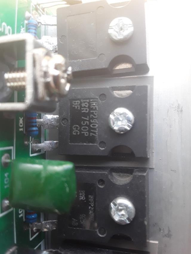 All 4 irfp2907z the print on each one of them looks a little bit different like they're not from the same batch the top line of print is all the same letters and numbers the second two lines of print are different letters and numbers it came with one of the capacitors bent over and the little board that sticks up vertically also bent over which I think controls what voltage input came packed in Thin star foam looking stuff wrapped around it With a little bit of tape no box not much protection at all it has three bad solder points on the bottom to dry joints and one without any solder all components go through the board and solder on the bottom the mosfets are incredibly close together and it has screw on connectors for the in from battery and out to Transformer the board is 4 in by 4 in the heatsink is the tallest thing sticking up and it is 2 and 1/8 inches tall I paid $28 with shipping off of eBay I guess you get what you pay for LOL the only thing that was a surprised to me was I thought the mosfets was going to be hy4008 looking forward to any comments or suggestions this is my practice boardEdited by BenandAmber 2019-02-23 be warned i am good parrot but Dumber than a box of rocks |