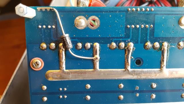 3 - remove C19 if fitted, then bridge the terminals of C19. This now connects the IR2210 shutdown pins to ground.