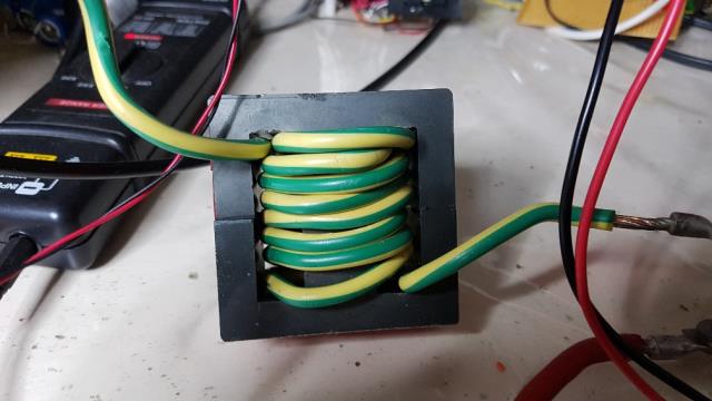 Here is one of mine. I used 6mm2 cable, 8 turns as you can see. The LCR meter shows 46uH and in testing, it does not saturate until about 70A or so (from memory)