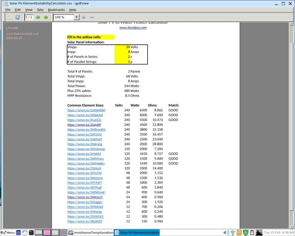 I have used and Modified  The Poz calculator and while it is helpful, I have seen that direct connecting panels  is HIGHLY inefficient up till the point where you have the same wattage PRODUCED by the panels ( not just Nameplate rating) as the element you are driving.