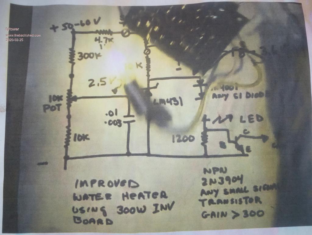 He's heating hot water direct from solar panels he claims but I have tried following what he's doing and he has made it very confusing. Changing inverter boards and supercaps etc.His pictures are poorly lighted casting shadows that look like wires and his circuits are incomplete . Theres no big overview to start you in the right direction just a lot of isolated detail.