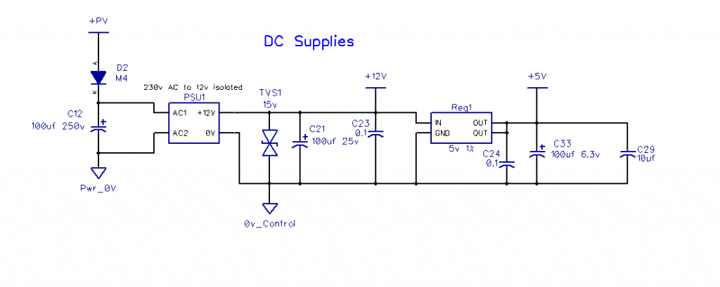 Have added an extra input rectifier in the input to prevent the 1000uf of caps back feeding a possibly large current surge into the inputs of a couple of the commercial controllers in the system, they have internal input relays and I dont want their contacts burnt off.