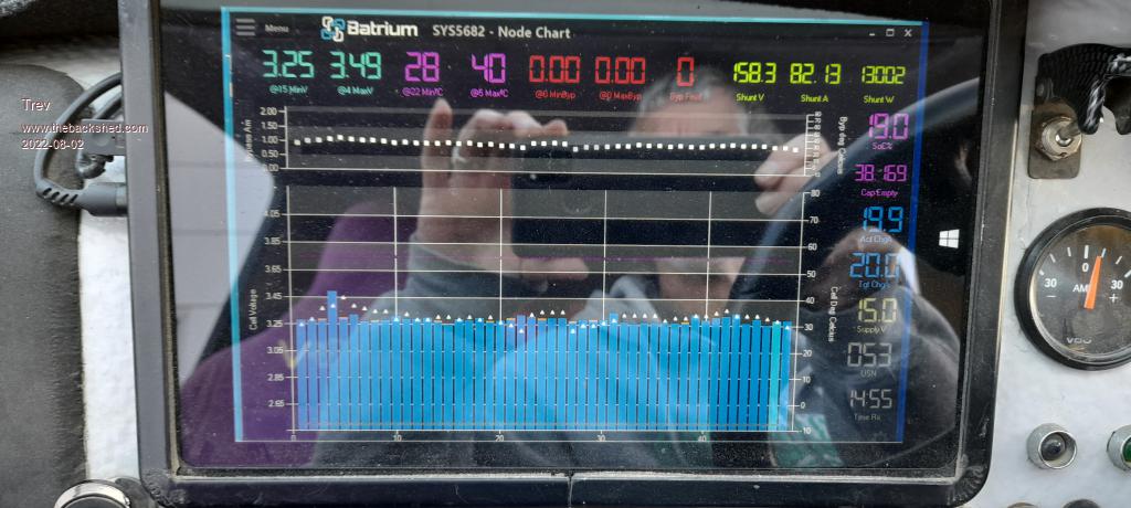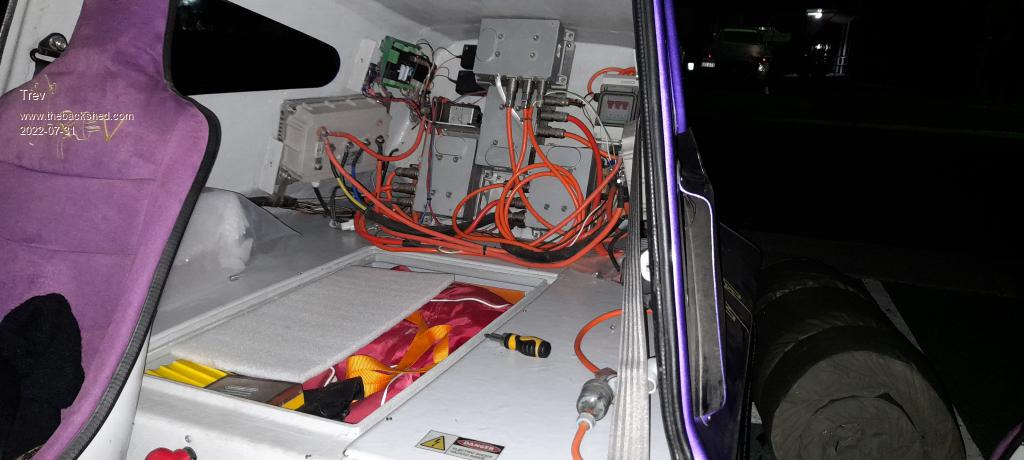 Then stripped T-Rev. The CAN control charger was not working. It worked back at Rocky, the last charge station. I can't see why. I reset the BMS several times. The LED indicates in 'stand by'. Don't know what that means, but no good  when it should be charging.