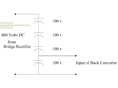 Hi, I several 450 volt, 470 uF caps. Again I not sure how they work. I am having trouble finding large voltage caps. Suggestions for a good value input capacitor are welcome.